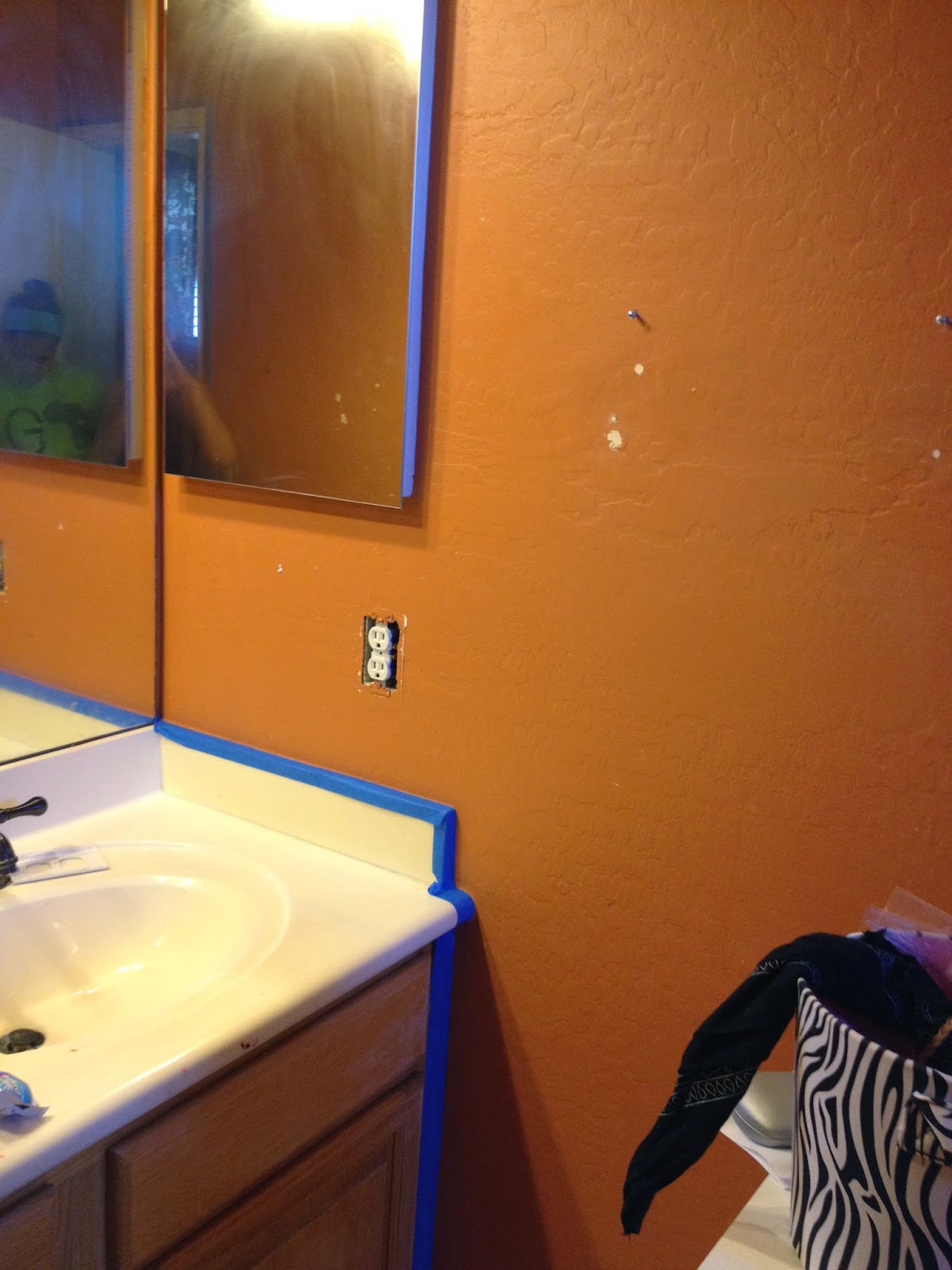 is ready for a new look in the bathroom upstairs.