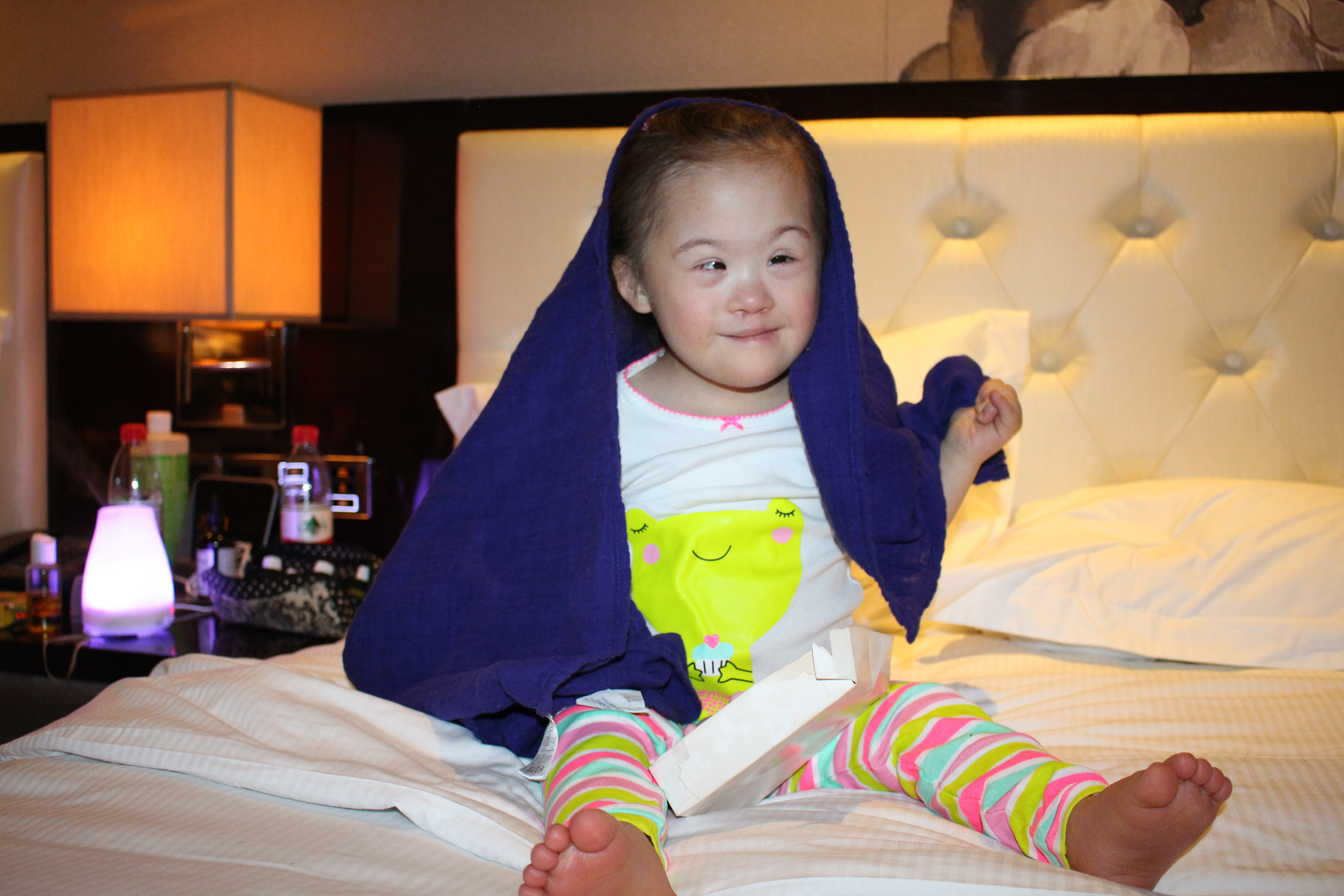 Other than that arching her back thing while crying loudly the second I left our room, to the elevator, wailing as the elevator stopped at different floors and continuing her public announcement that she was not happy, as she and I walked up to the group…yeah, that thing… She’s done amazing.