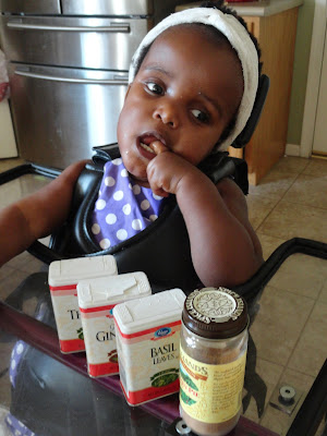 Yesterday I again tried a speck of ground watermelon at the back of her gum, but she really does NOT like textures, at least not yet. We continue to try more "solid" food {mashed well} but she's not interested {unless it's a dab in a spoon of basically pureed food} but without the pureed food she will firmly press her lips together and turn away. Actually, it makes me giggle every time she does it, because she clearly has an opinion and is expressing it well – and remember they said "she'd never do anything". Well this chica sure knows what she does and does not want in food {and many other things!}.
