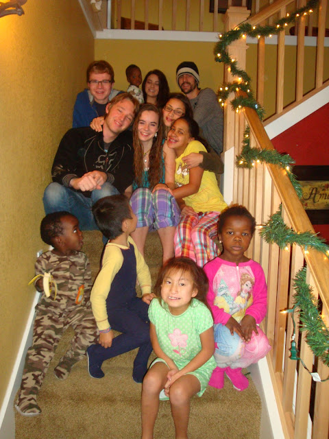 We start every Christmas morning with all the kids lining up on the stairs before they are allowed down to open their stockings….and every year we love seeing how the kids have grown!!