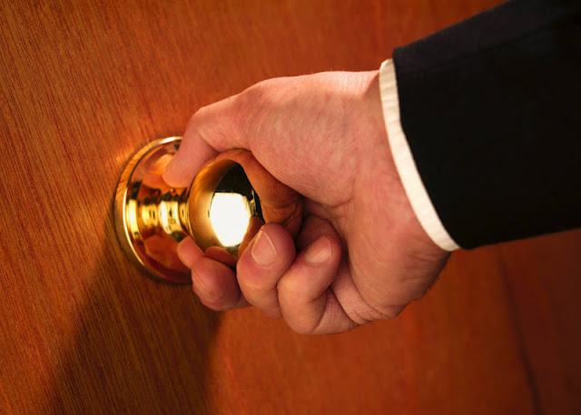 Through the glass on the side of the front door, I was able to see that once outside he instantly turned around and reached for the door handle again.